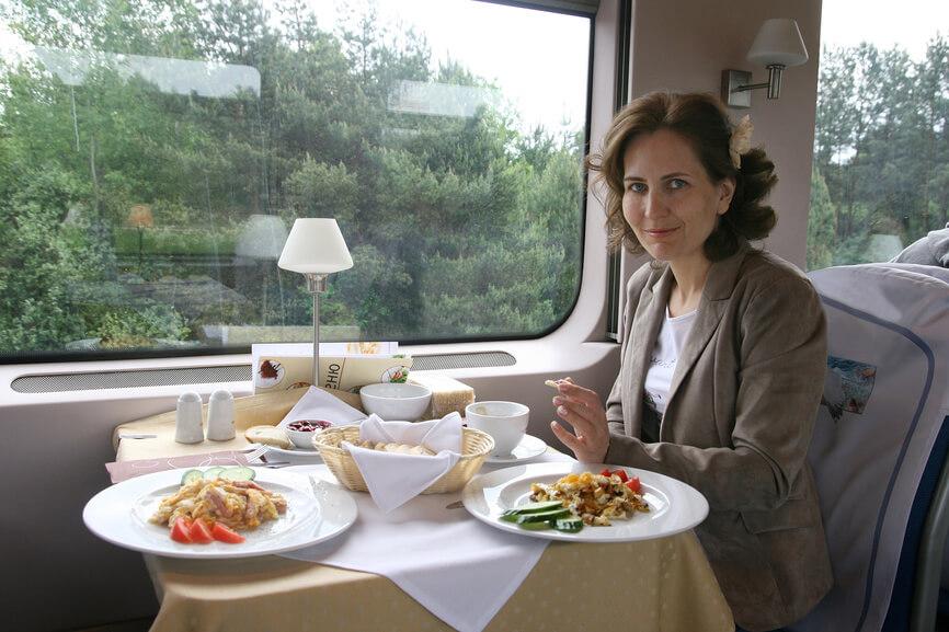 Так как же быть, что лучше брать с собой в поезд – деньги на обед или еду, готовый набор или свою запеченную курочку? Естественно, это вопрос личных предпочтений и отношения к еде. Здесь РЖД предлагает самостоятельно сделать выбор, как относительно еды (свое или покупное), так и места обеда: можно в купе, можно в вагоне-ресторане. Все для комфорта и удобства пассажиров!
