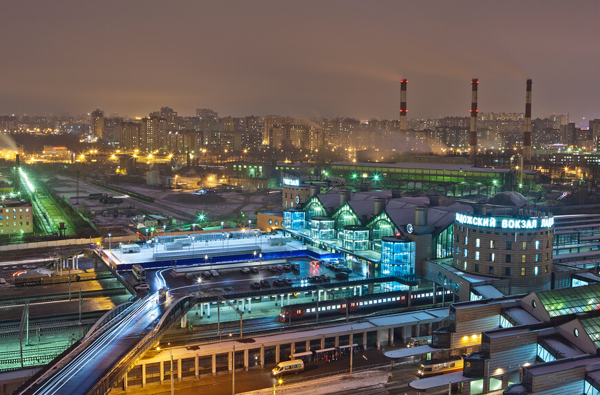Ladoga Railway Station is the newest and transit operating railway station in St. Petersburg. 50 suburban trains, 30 intercity and international trains depart from it, in total the station includes 10 tracks and 4 platforms.