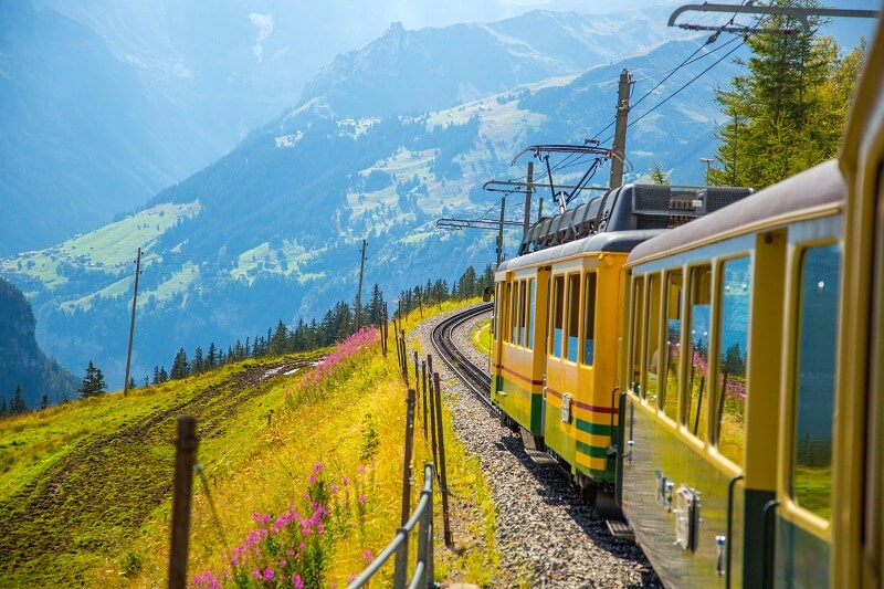 Firstly, there is a railway that runs through the Alps. This railway, known as the Glacier Express, is the longest in Europe. It passes through 291 bridges, 91 tunnels, 16 cycle gorges, 691 miles (1,110 km) and 8 hours. Glacier Express is an amazing way to travel, with views that you need to see at least once in your life.